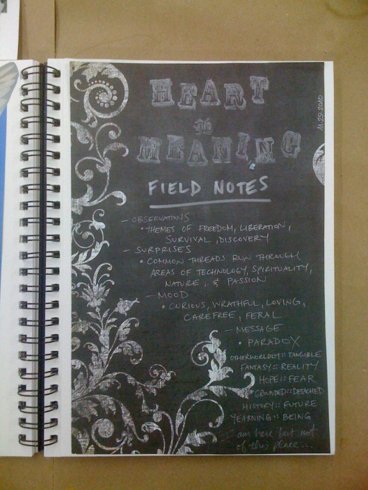 As a final step, we were asked to do “Field Notes” on our pages, and reflect upon what the results meant. What were our observations? What were the surprises? What was the mood? What was the message?