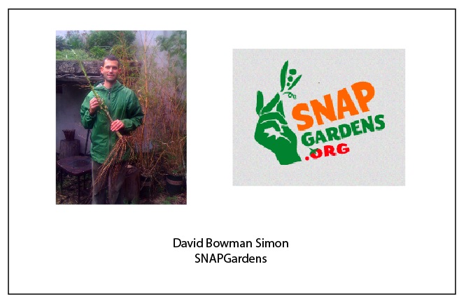David Bowman Simon is the founder of SNAPGardens, a campaign to raise awareness that SNAP (food stamps) can be used to purchase food-producing plants and seeds. He wants to spread the word and create tools to facilitate successful gardening projects.
