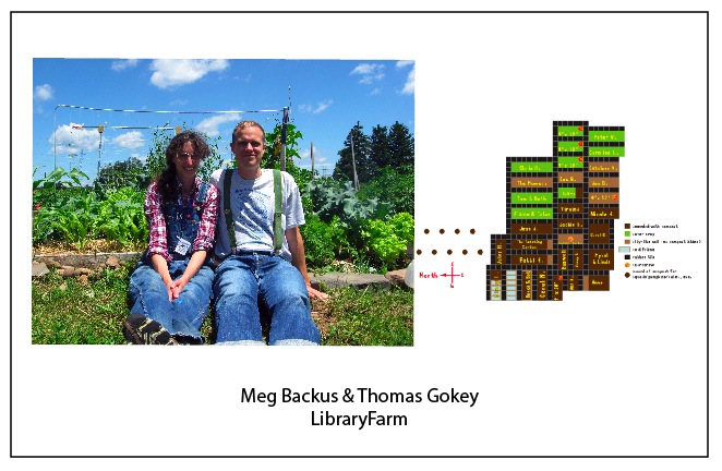 Thomas Gokey is an artist and Meg Backus is a public librarian. Together they have started LibraryFarm, a collective farm on public land at a public library. They are reenvisioning libraries as more connected with hackerspaces – places that help us rethink and remake the hardware and software running our society, and also as places for P2P value exchange.