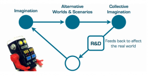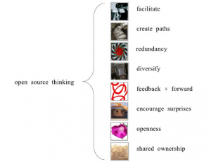 I’ve been working with Lance Weiler on achieving breakthroughs through emergent narrative (we’ve used it successfully for both business constructs and purely cause-related or civic stuff). The design is frameworked for “failure”, “unraveling” and adaptation. There are few iterations of that framework based on the business, social or cultural context, but essentially you set a goal, split the group up and assign story development pieces, give folks a space to spitball, act out and emote/express, you coordinate actions that end up defining roles (archetypes) and you weave a narrative together that results in some sort of output and/or identifiable problem-solving process. Sometimes it’s just a new way to think about things. We just did a version as a lab for filmmakers in Australia, but have applied this successfully to product design, org improvement, branding, and policy formation, etc. in different parts if the world — transcends most language and cultural barriers. Check out Reboot Stories, DIY Days and WSWP as examples. You can also check out Lance’s course “Building Storyworlds in 21c” which is a Columbia U-based open curriculum which uses a lot of these open design/breakthrough innovation principles.